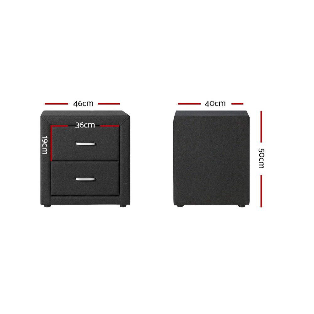 Artiss Bedside Table 2 Drawers Fabric - CADEN Charcoal
