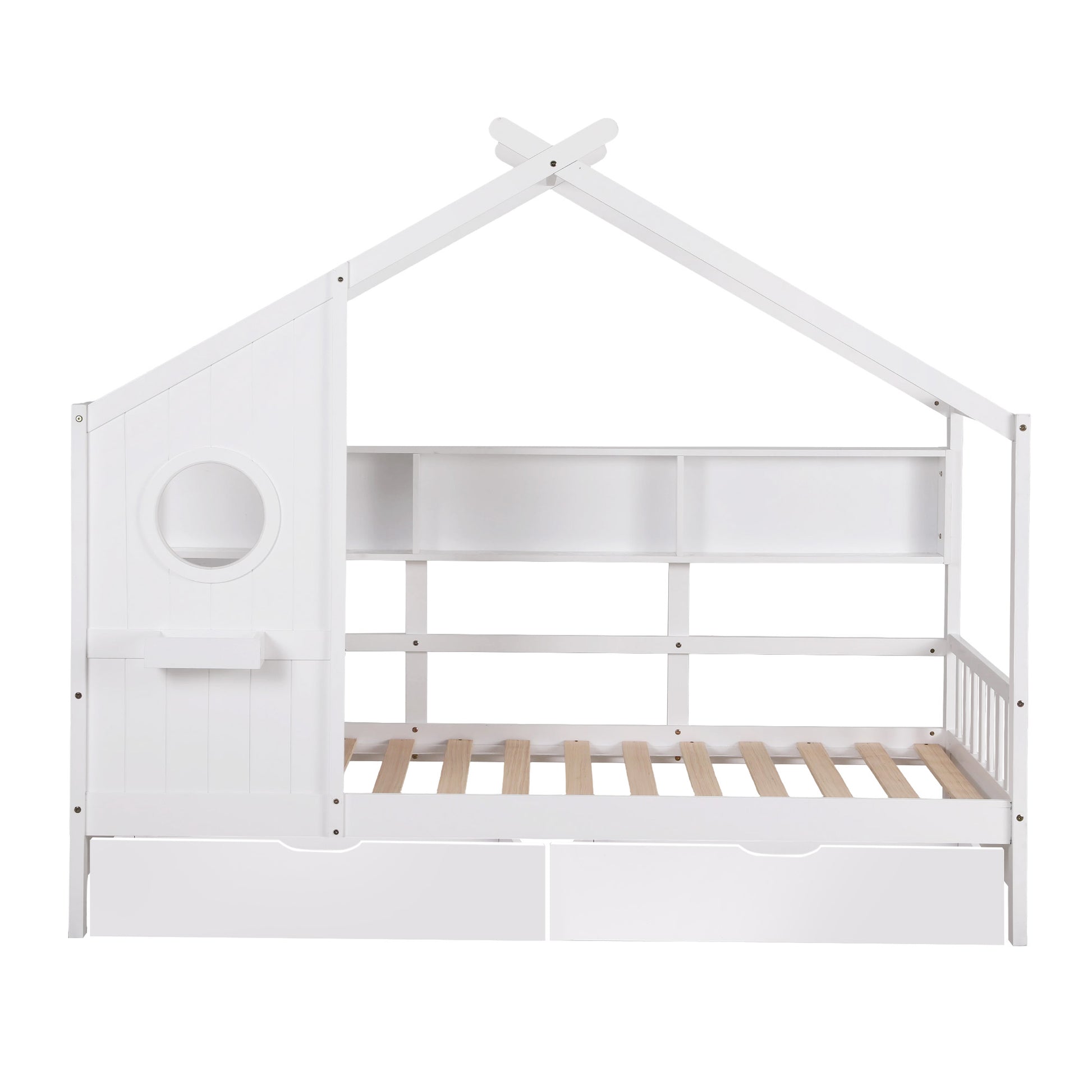 Artiss Kids Single Bed Frame with 3 Storage Bookcase & 2 Drawers House Bed Solid Wood Montessori Bed Easy Assembly White