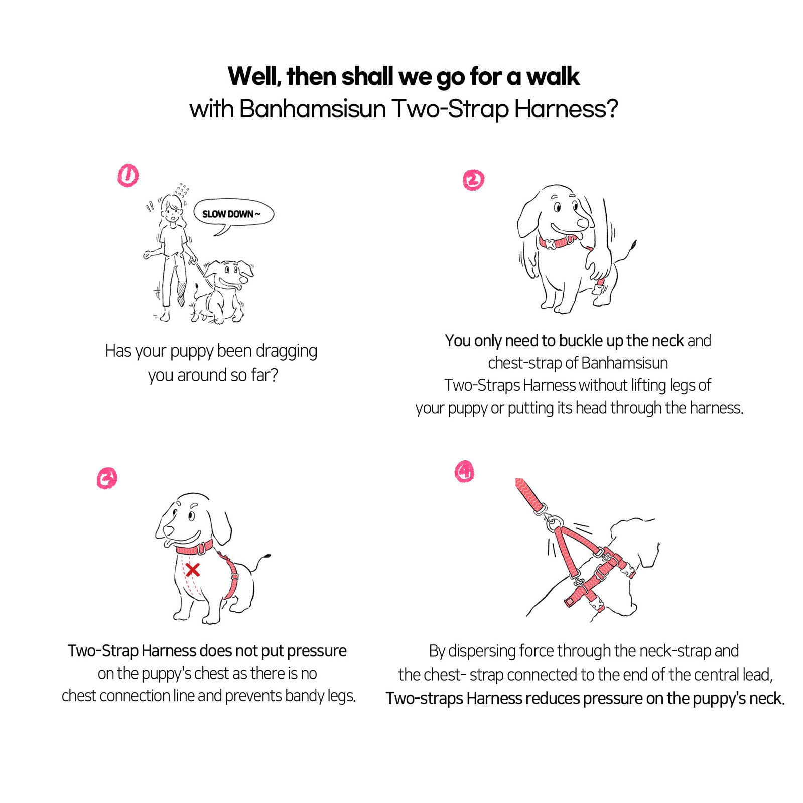 Tired of struggling with traditional dog harnesses that are hard to put on and uncomfortable for your pet? Upgrade to the Banhamsisun Double-Lined Harness, setting a new standard in comfort and convenience.