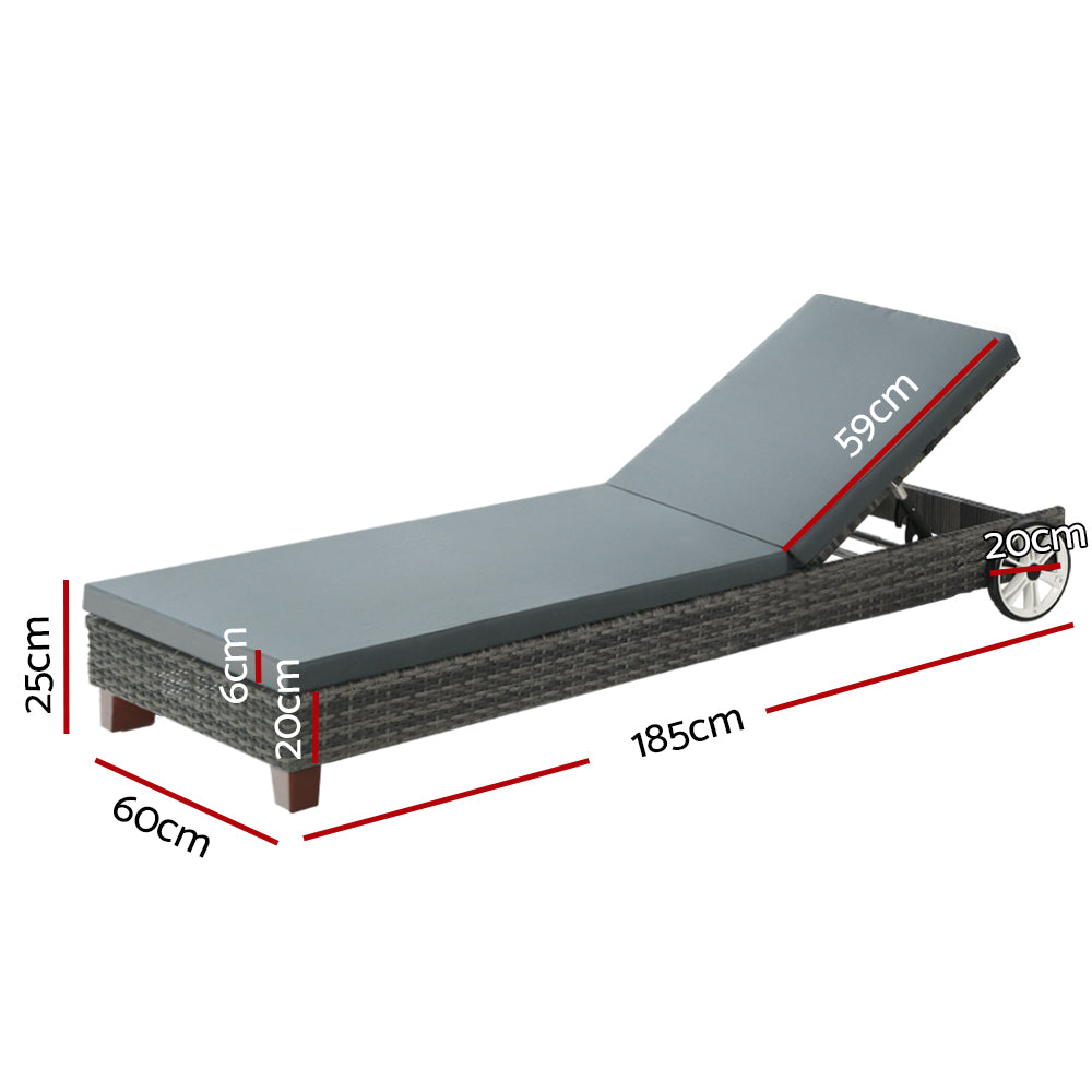 Gardeon Sun Lounge Wicker Lounger Outdoor Furniture Day Bed Wheels Patio Grey