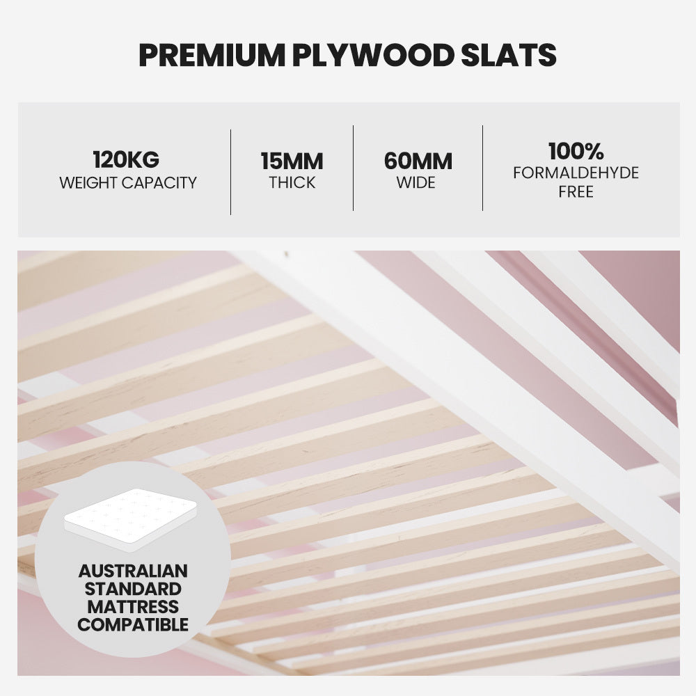 Crafted with solid pine with premium quality slats, it offers an impressive 120kg capacity, ensuring durability and stability. The extended drying process of the frame guarantees long-lasting quality. This Kingston Slumber bed single size frame is eco-friendly, 100% formaldehyde-free and features non-toxic paint.