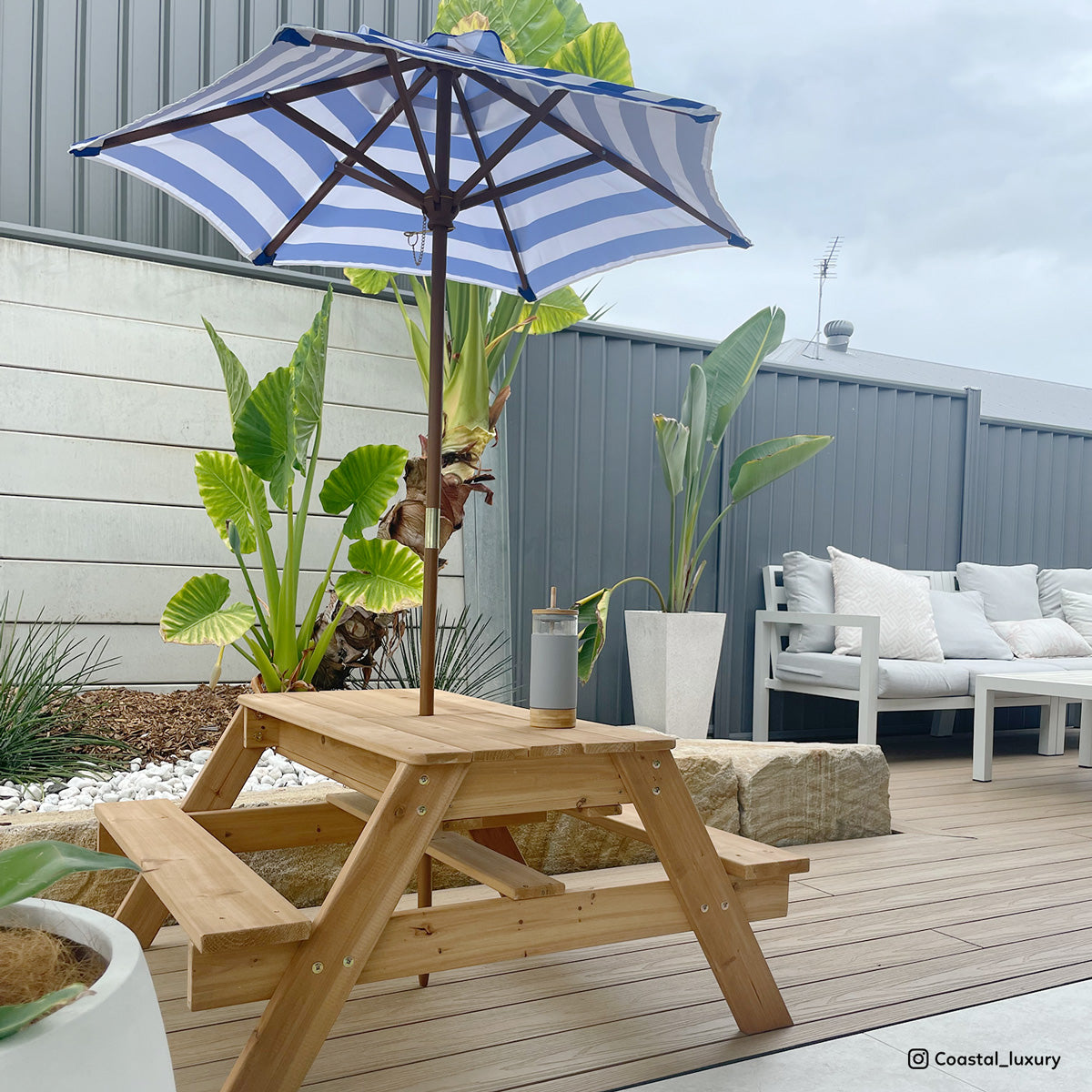 A world of possibilities awaits with the Sunrise Sand and Water Table from Lifespan Kids. They'll be captivated with two nifty basins, great for holding sand and water. The durable construction and a UV protected removable umbrella keep your youngsters safe and sun smart outdoors.