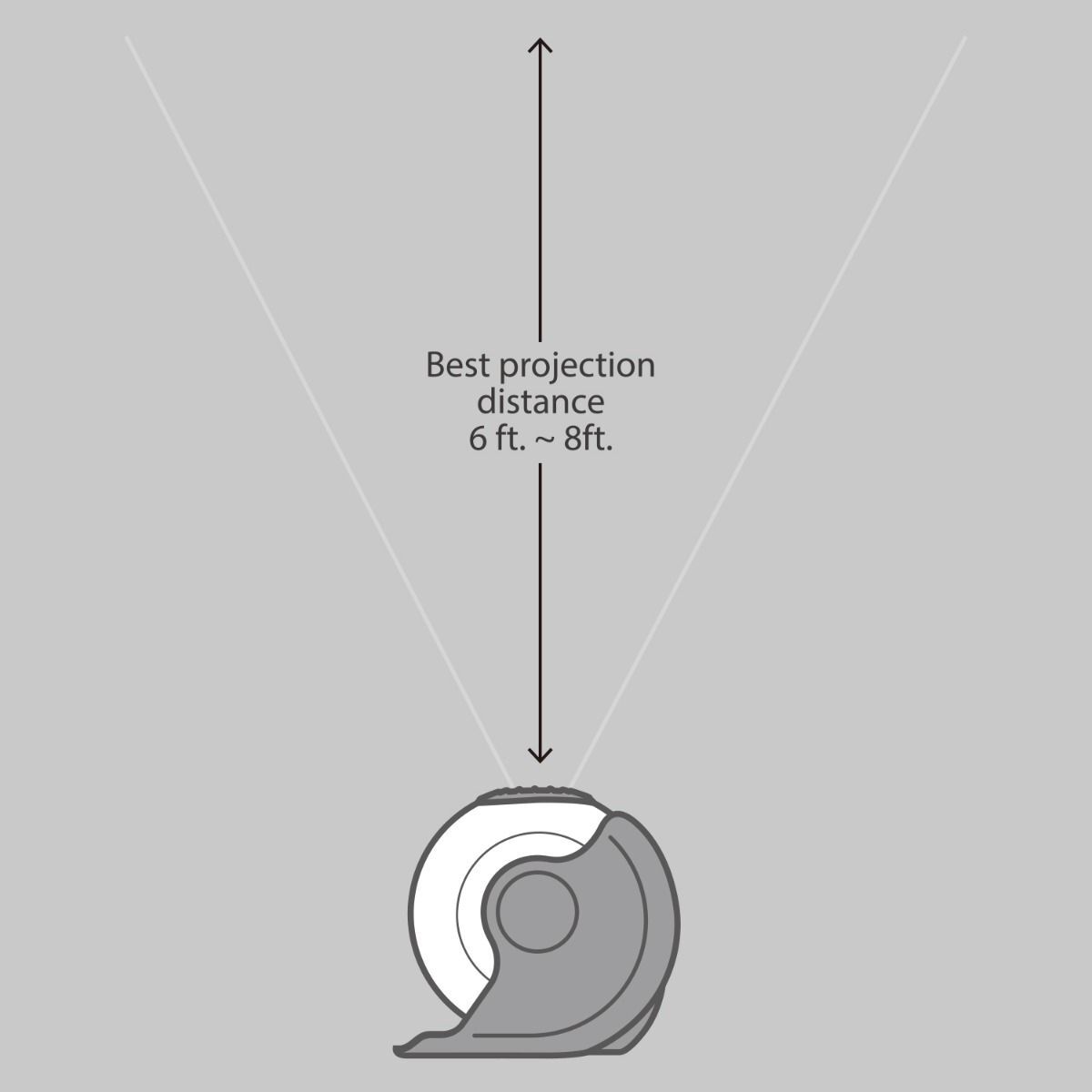 - Large Projection: Up to 3.6m wide and 6 to 8 ft high onto the ceiling, depending on the projection distance.
