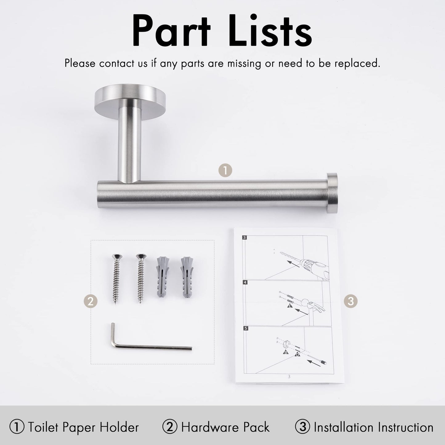 The toilet paper holder (includes bracket and screws) is made of premium SUS304 stainless steel to resist corrosion & rust. Ideal for humid environments such as bathrooms and kitchens.